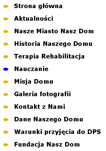 | Dzieci i młodzież przebywające w naszym Domu mają zapewnioną możliwość realizacji obowiązku szkolnego poprzez udział w dostosowanej do wieku i niepełnosprawności formie zajęć prowadzonych przez nauczycieli ze Specjalnego Ośrodka Szkolno-Wychowawczego. Mieszkańcy podlegający obowiązkowi szkolnemu poddawani są badaniom (psychologicznym, pedagogicznym) i na podstawie Orzeczeń wydawanych przez PPP zakwalifikowani są do odpowiedniego rodzaju zajęć: w Zespołach Rewalidacyjno – Wychowawczych, w Zespołach Edukacyjno – Terapeutycznych, w formie zajęć indywidualnych dostosowanych do stopnia upośledzenia lub w zajęciach Wczesnego Wspomagania Rozwoju. |
